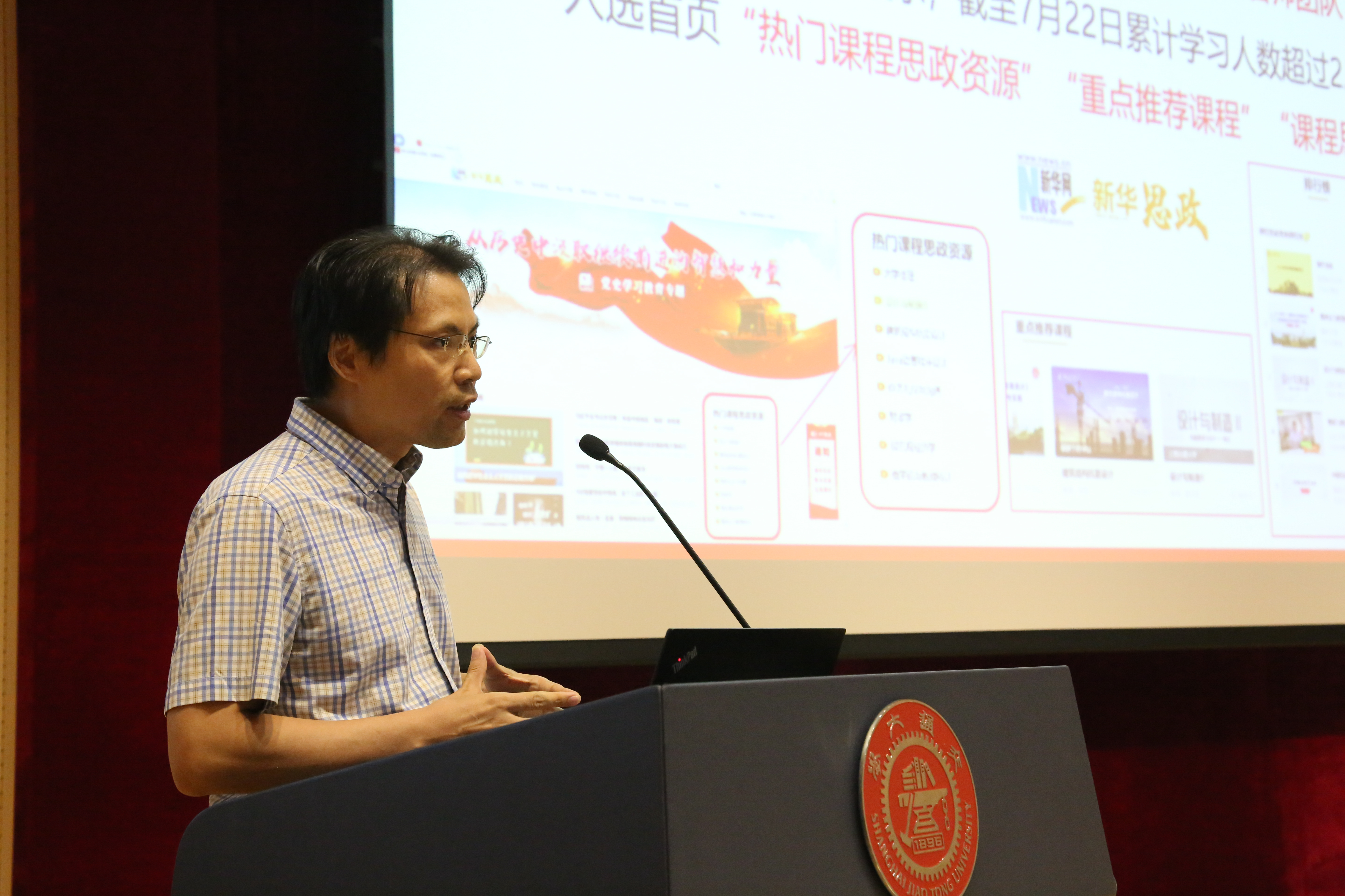 郭为忠对课程思政建设工作进展作了汇报,围绕建设情况和教学方法两方面详细介绍了课程思政从试点推广、形成品牌效应的发展历程,指出目前学院已形成典型教学案例库,实现课程思政全覆盖。