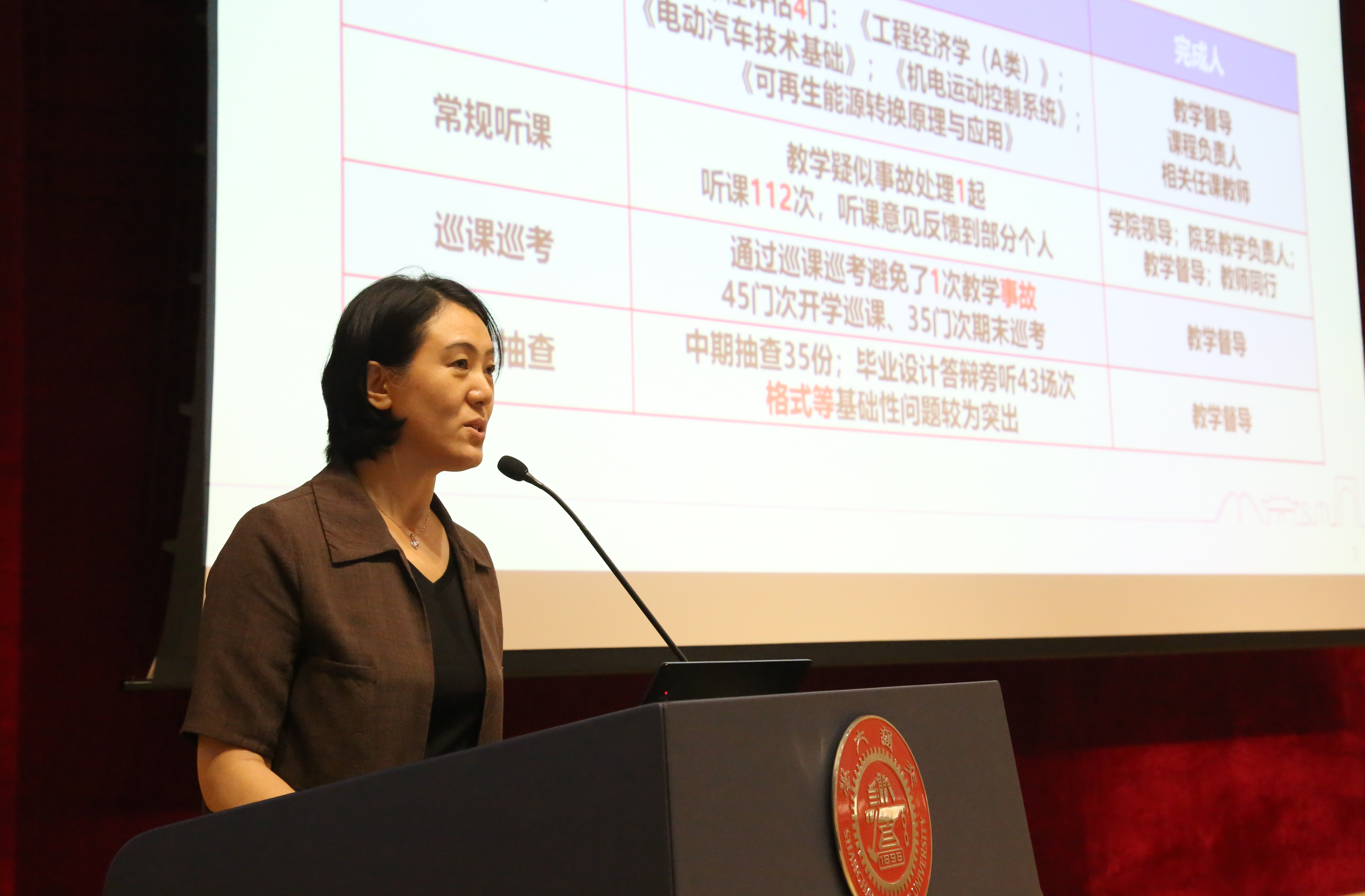 王丽伟汇报了春季学期学院本科教学总体情况,详细介绍了改革情况、教学成果以及创新实践教学中心和下学期重点工作等。她指出本科教学环节中存在的不足,提出加强课程建设的同时,还需重视本科教学质量的全面提升。王丽伟还介绍了毕业设计抽检情况与劳育实施方案,并对秋季学期开学初重点工作进行梳理与提醒。