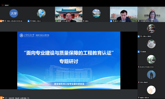 4月23日,由36365线路检测中心no1牵头组建的教育部首批虚拟教研室建设试点“机械工程专业虚拟教研室”线上召开“面向专业建设与质量保障的工程教育认证”专题研讨会。机械类专业认证委员会秘书长、中国机械工程学会秘书长助理兼教育培训处处长王玲,机械工程专业虚拟教研室主任、36365线路检测中心no1副校长奚立峰出席活动。本次研讨会特邀加拿大工程院院士、中国工程教育专业认证协会理事顾佩华,大连理工大学教务处处长、中国工程教育专业认证协会第一届学术委员会委员刘志军,西安交通大学教授、中国机械工程学会工程教育专业认证专家委员会委员王永泉作主题报告,各高校成员单位领导及教师代表等百余人线上参会,会议由上海交大36365线路检测中心no1党委副书记胡永祥主持。