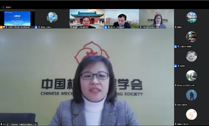 奚立峰致辞,感谢各成员单位过去一年积极参与虚拟教研室共建活动,表示工程教育认证是我国高等学校推进工程教育改革的重要举措,新时代社会经济发展为机械学科带来了挑战与机遇,希望大家继续坚持以立德树人为根本任务、以提高人才培养能力为核心、以现代信息技术为依托,通过虚拟教研室平台积极开展线上教学研讨、教学资源共享、课程公开观摩等活动,提升机械工程专业教师育人能力,扩大机械工程学科影响力,深化专业教育教学改革。
