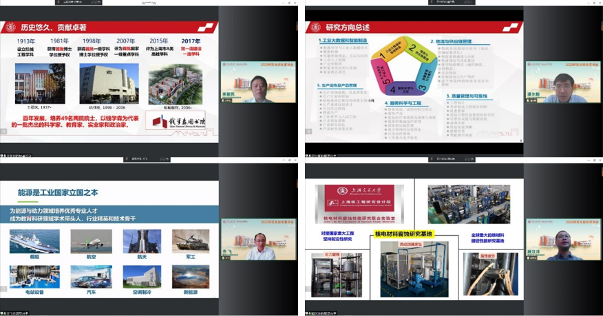 来新民、潘尔顺、齐飞、顾汉洋先后就机械学科、工业工程学科、动力工程及工程热物理学科、核科学与技术学科的发展历史、学科特色、师资队伍、学术前沿和人才培养等情况进行了全面介绍。