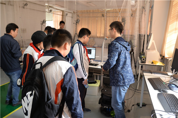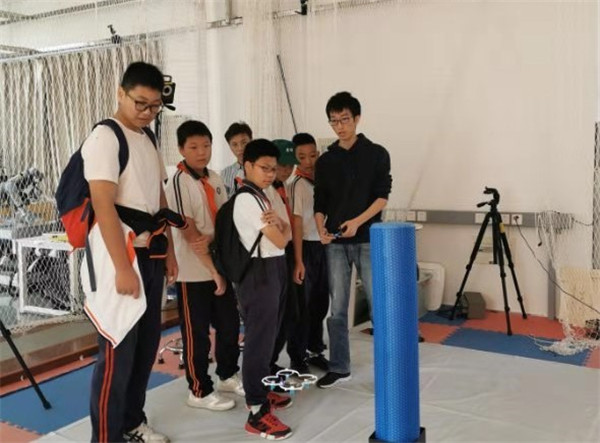 在无人机系统实验室,志愿者王赵映通过讲解和播放视频向孩子们介绍了无人机的种类及其在桥梁检测、巡查等实际场景中的应用,讲解了无人机目前研究的热点及难题。随后,在志愿者李佳毅的指导下孩子们亲自体验了如何操控无人机进行飞行,激动兴奋之情溢于言表。