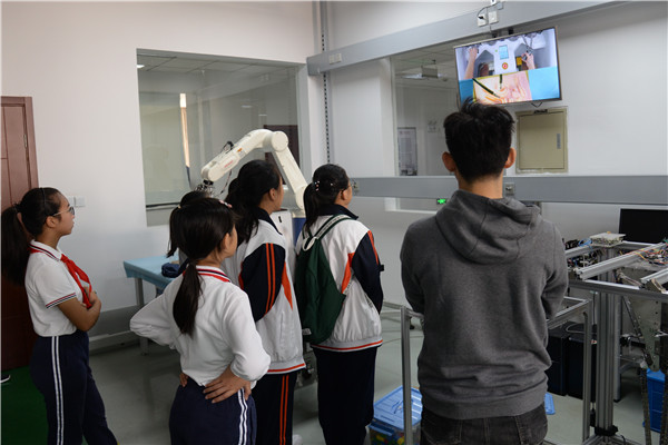 金秋十月是丹桂飘香的季节,伴着浓郁的桂花香,10月20日,上海市闵行区七宝实验中学的初中生们来到交大校园,参加重点实验室参观体验公益活动。活动以启迪孩子们创新思维、激励远大理想为目的,由机械动力学院机器人所研究生第一党支部支部书记王志永负责组织,27位支部党员及积极分子参与承办。