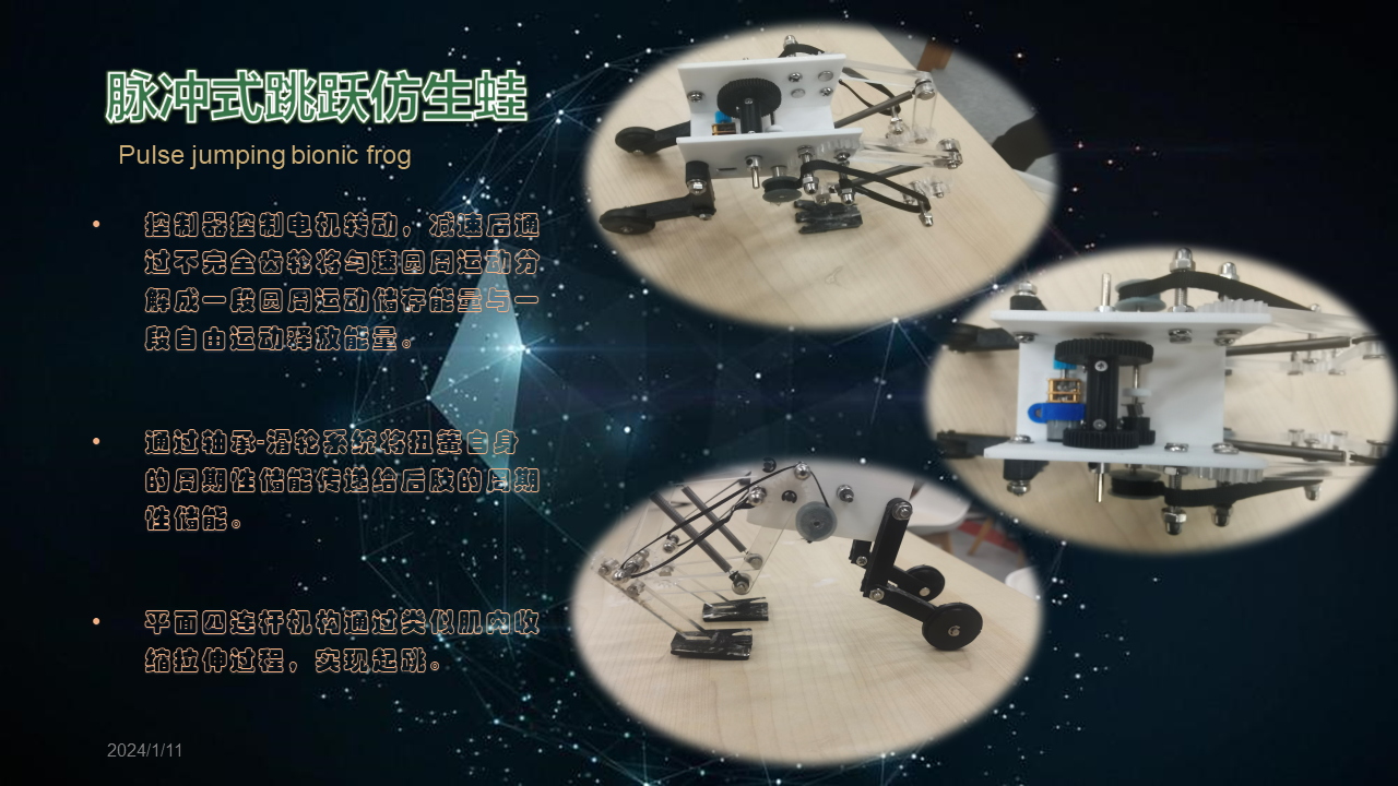 本次选题的目标是设计并制作一款仿生青蛙机器人,能够在陆地上进行自由跳跃,并具有以下特点: