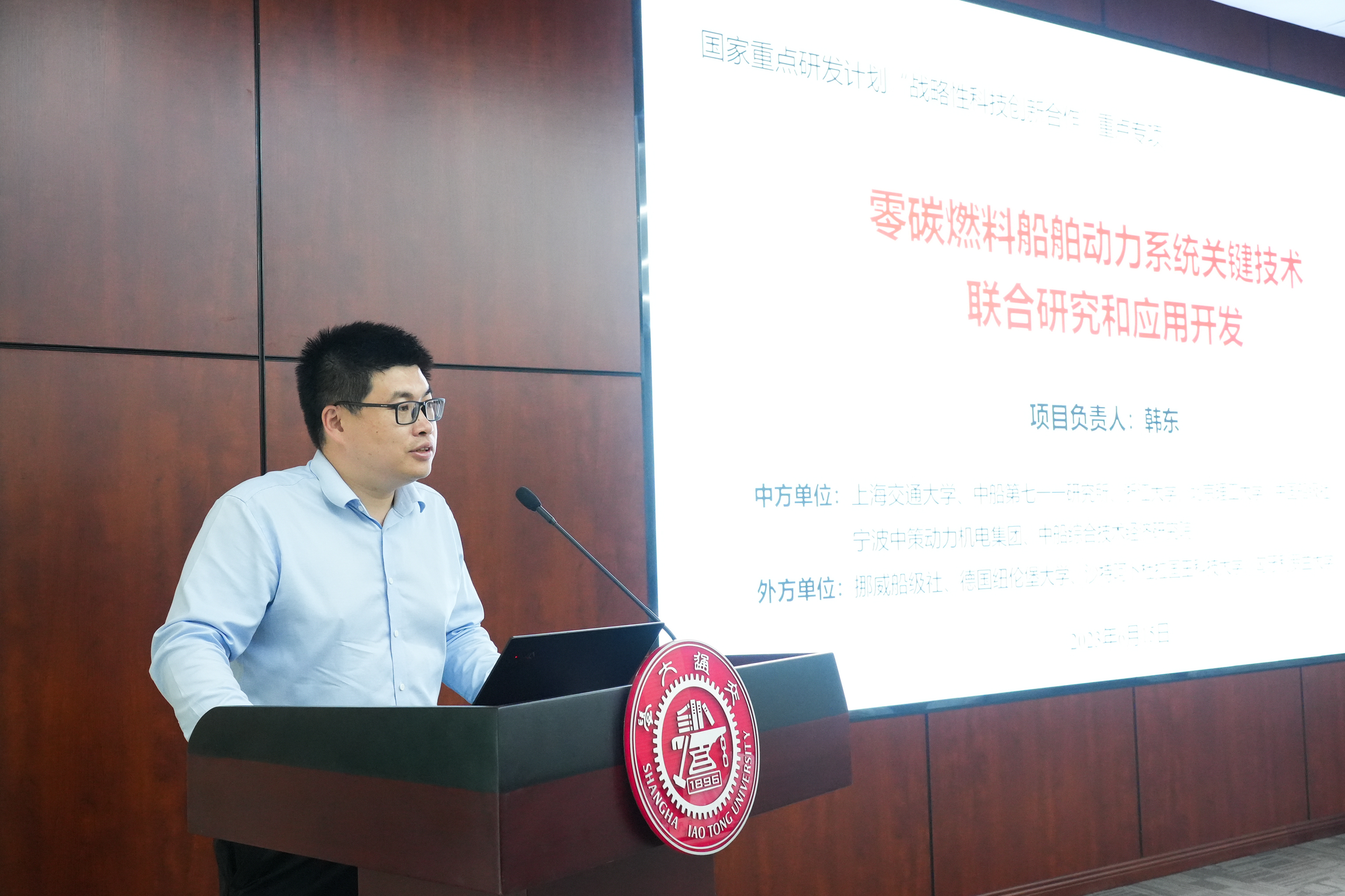 6月15日,36365线路检测中心no1牵头承担的国家重点研发计划战略性科技创新合作重点专项“零碳燃料船舶动力系统关键技术联合研究和应用开发”项目启动会召开。上海市科学技术委员会国际合作处处长何晌艳、项目官员杨文展,项目咨询专家、交通运输部规划研究院副院长徐洪磊,哈尔滨船舶锅炉涡轮机研究所常山研究员,上海海事大学钟兢军教授,中国科学院城市环境研究所单文坡研究员,陕西柴油机重工有限公司张旭东研究员等出席。中国工程院院士、36365线路检测中心no1黄震教授、36365线路检测中心no1前沿创新研究院院长赵一新教授、36365线路检测中心no1副院长瞿叶高教授、项目负责人韩东教授以及课题组骨干成员共30余位代表参加了启动会。启动会开幕式由赵一新主持。